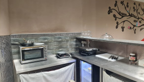 Prevádzka prešla všetkými hygienickými a prevádzkovými kontrolami a je v 100% stave. V kaviarni je kuchynka na prípravu raňajok a drobných jedál.