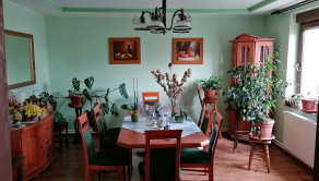 Tento veľký dom je na predaj v tichej časti obce Chynorany. Pôvodný tehlový rodinný dom z roku 1963 prešiel kompletnou rekonštrukciou a zároveň prístavbou a nadstavbou v roku 2005. Prístavba a nadstavba je z pórobetónových tvárnic a strecha je sedlová prekrytá betónovou škridlou Bramac. Dom je zateplený polystyrénom hrúbky 100 mm. Okná sú plastové s izolačným dvojsklom, plastovými žalúziami a vonkajšími plastovými roletami.
