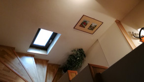 Vnútorné dvere sú z masívu (dub), plné aj zasklené, osadené do drevených obložkových zárubní. Podlahy sú betónové s keramickou dlažbou, ale aj veľkoplošné laminátové parkety (plávajúca podlaha v izbách).