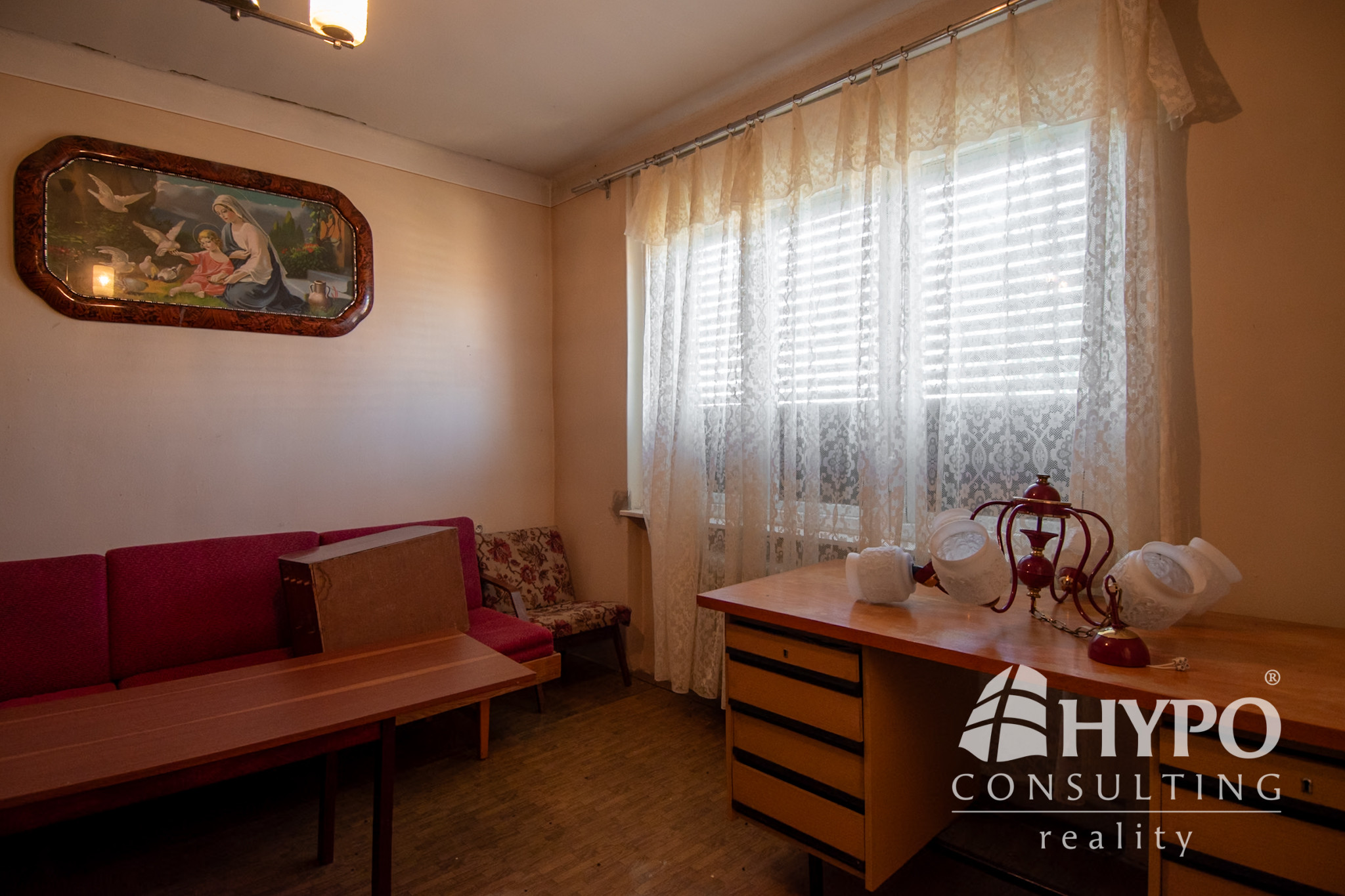 Tento starší dom hľadá nového majiteľa, ktorý ho zveľadí a vdýchne mu nový život. Na prízemi sa nachádza zádverie, vstupná chodba so schodiskom, kuchyňa a priestranná obývačka, ktorú je možné priečkou rozdeliť na dve miestnosti. Na poschodí sa nachádza jedna menšia izba so vstupom na terasu, ktorá môže slúžiť aj ako pracovňa, prípadne sušiareň bielizne, dve ďalšie izby, kúpeľňa a wc. Pivnica je pod 3/4 domom a je celá otvorená bez priečok. Nachádza sa tu plynový kotol. K domu je pristavaná garáž s jamou. Za domom sa nachádza hospodárska budova na chov hydiny, ošípaných a pod.