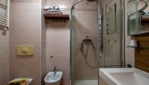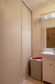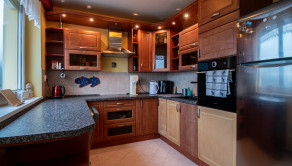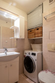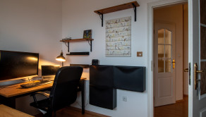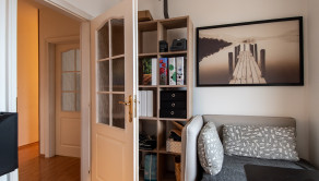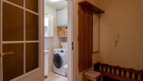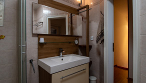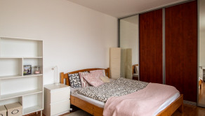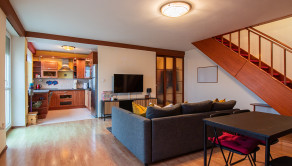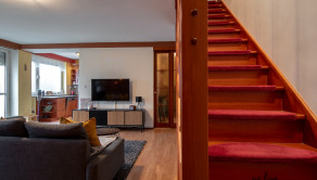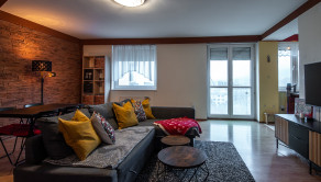 Byt pozostáva zo vstupnej chodby, so vstupom na toaletu a posuvnými dverami do obývacej izby. Cez posuvné dvere sa dostaneme do veľkej priestrannej obývačky s kuchynským kútom. V obývacej miestnosti je schodisko pri stene, ktorým sa dostaneme na chodbu so vstupom do dvoch priestranných spální s prístupom na loggiu. Z tejto chodby sa dostaneme aj do kúpeľne s toaletou.