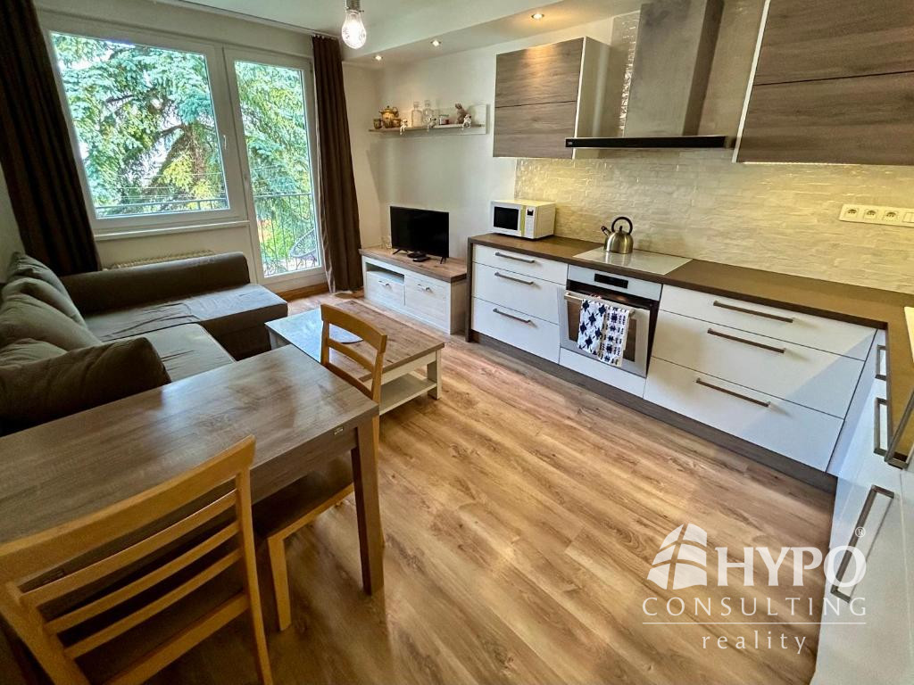 Tento zrekonštruovaný byt ponúka premyslenú dispozíciu, ktorá spája komfort s funkčnosťou. Vstupuje sa do priestrannej chodby, z ktorej je prístup do samostatnej toalety, kúpeľne so sprchovým kútom a práčkou. Kuchyňa s obývacou izbou je plne vybavená modernými spotrebičmi a doplnená jedálenským stolom, gaučom, TV a konferenčným stolíkom pričom sa cez ňu prechádza na balkón. Spálňa s obrovskou vstavanou skryňou a manželskou posteľou. Z predsiene sa vchádza do samostatnej izby s gaučom a pracovným stolom. Byt je kompletne zrekonštruovaný, vybavený novými spotrebičmi.