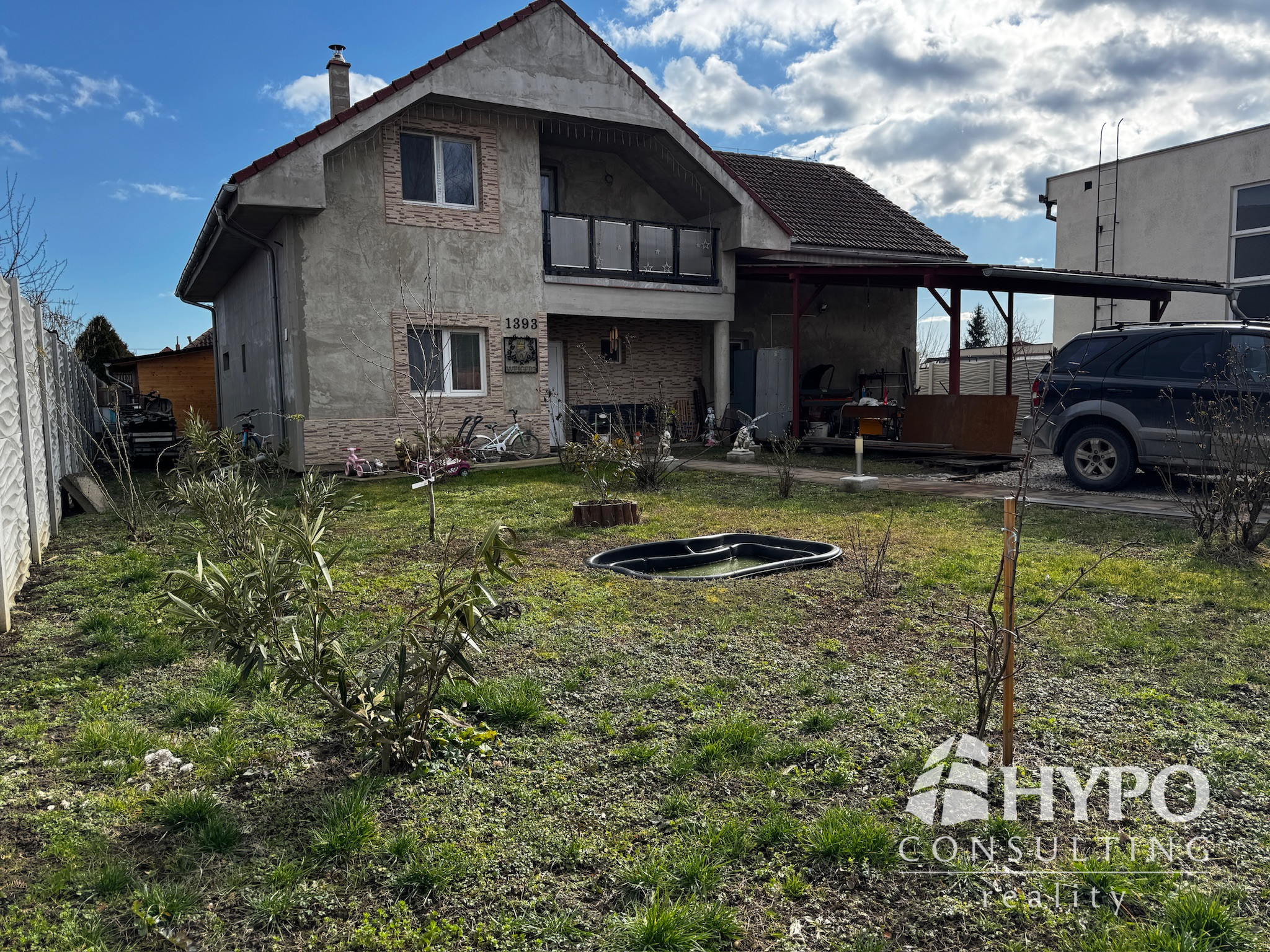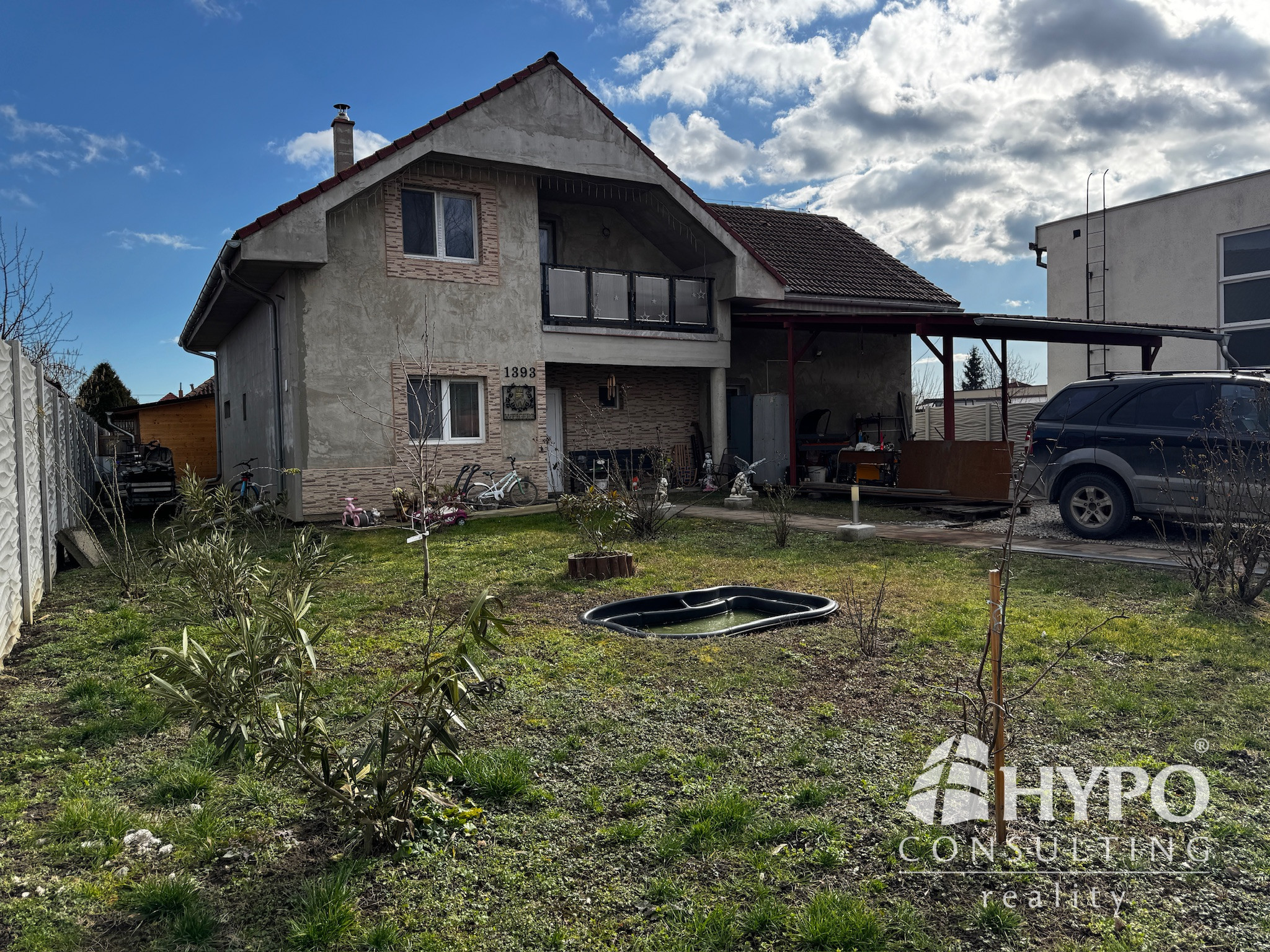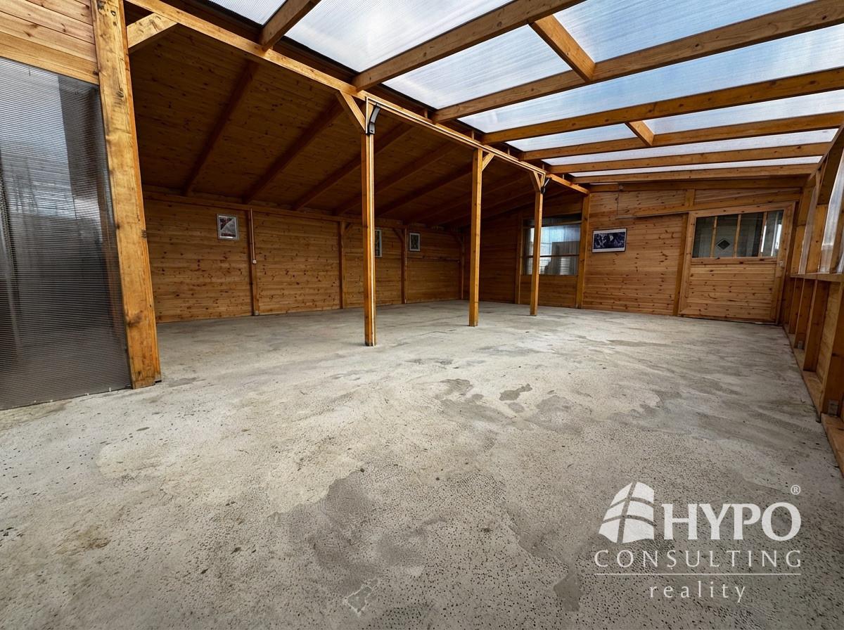 Z prednej časti domu je vedený prístrešok pre dve autá a mimo prístrešku vedia parkovať ďalšie dve prípadne tri autá.