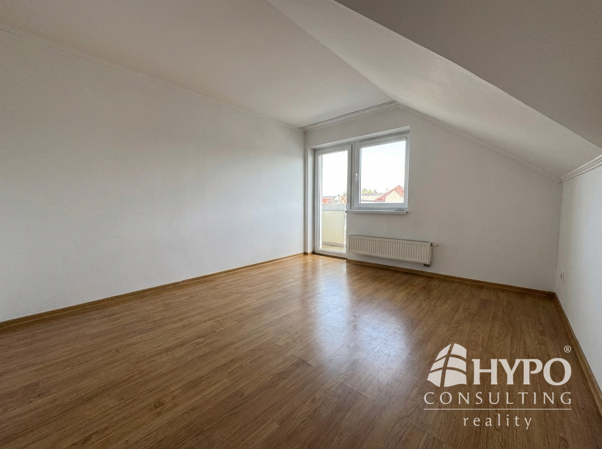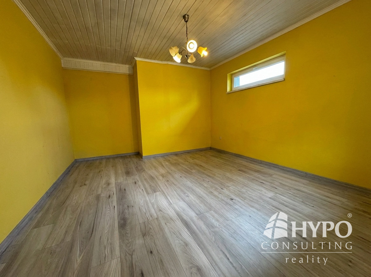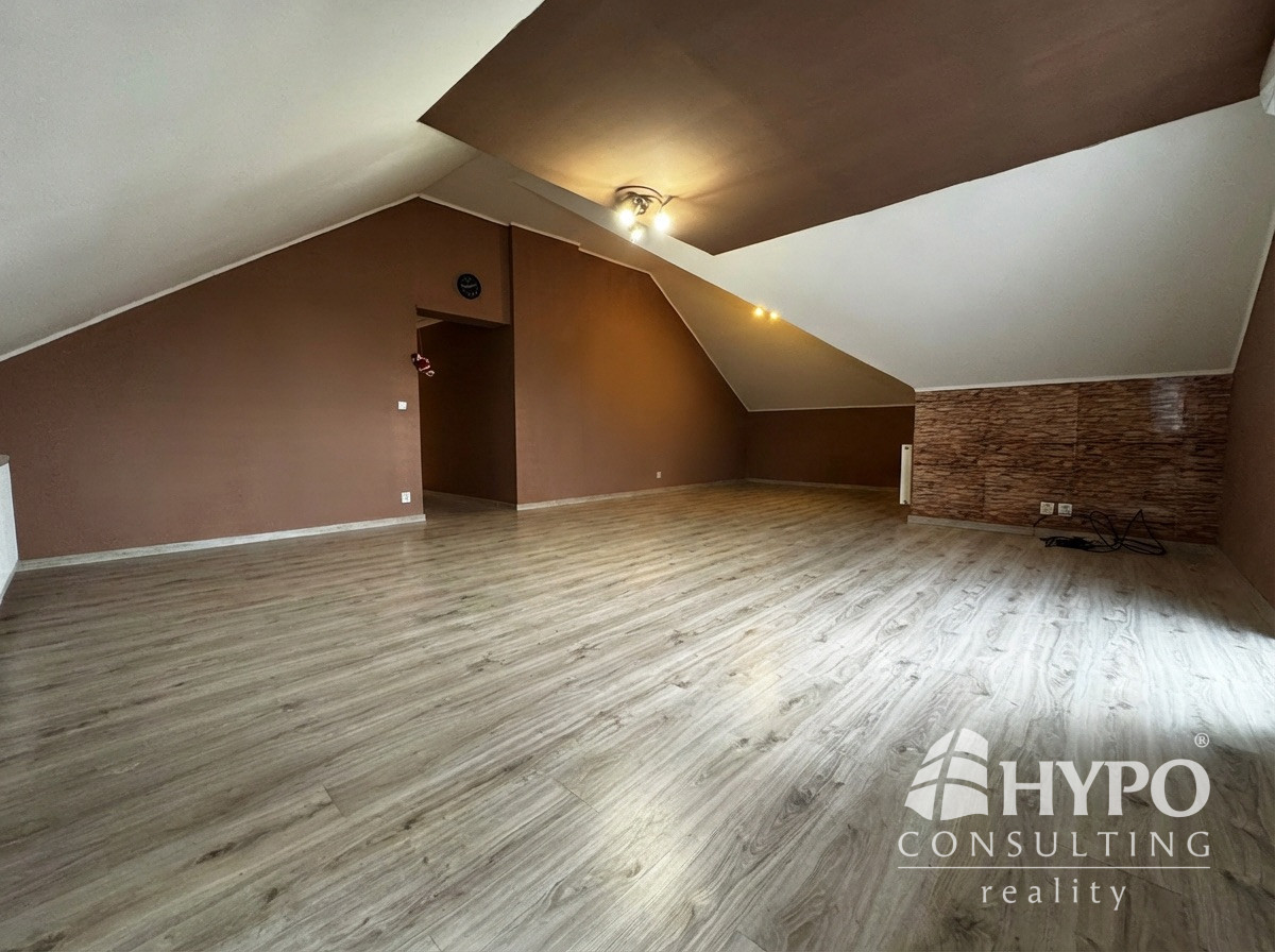 Na poschodí sa nachádzajú štyri izby, z toho jedna je väčšia a je tu možnosť mať kuchyňu s jedálňou alebo obývačkou. Je tu aj kúpeľňa s wc a šatník. To umožňuje do budúcna vytvoriť z tohoto domu dve bytové jednotky. Tri izby majú balkón. Tu sa nachádzajú radiátory.