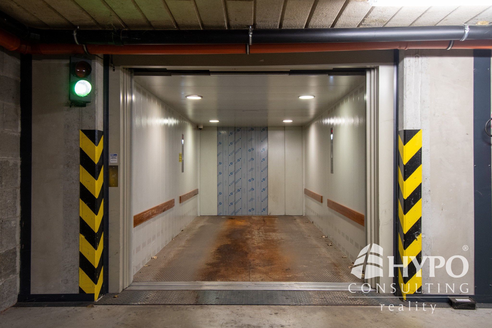 Súčasťou objektu je garáž s pohodlným vjazdom prostredníctvom auto-výťahu, ktorý zabezpečuje komfortný a bezpečný prístup k parkovaniu.