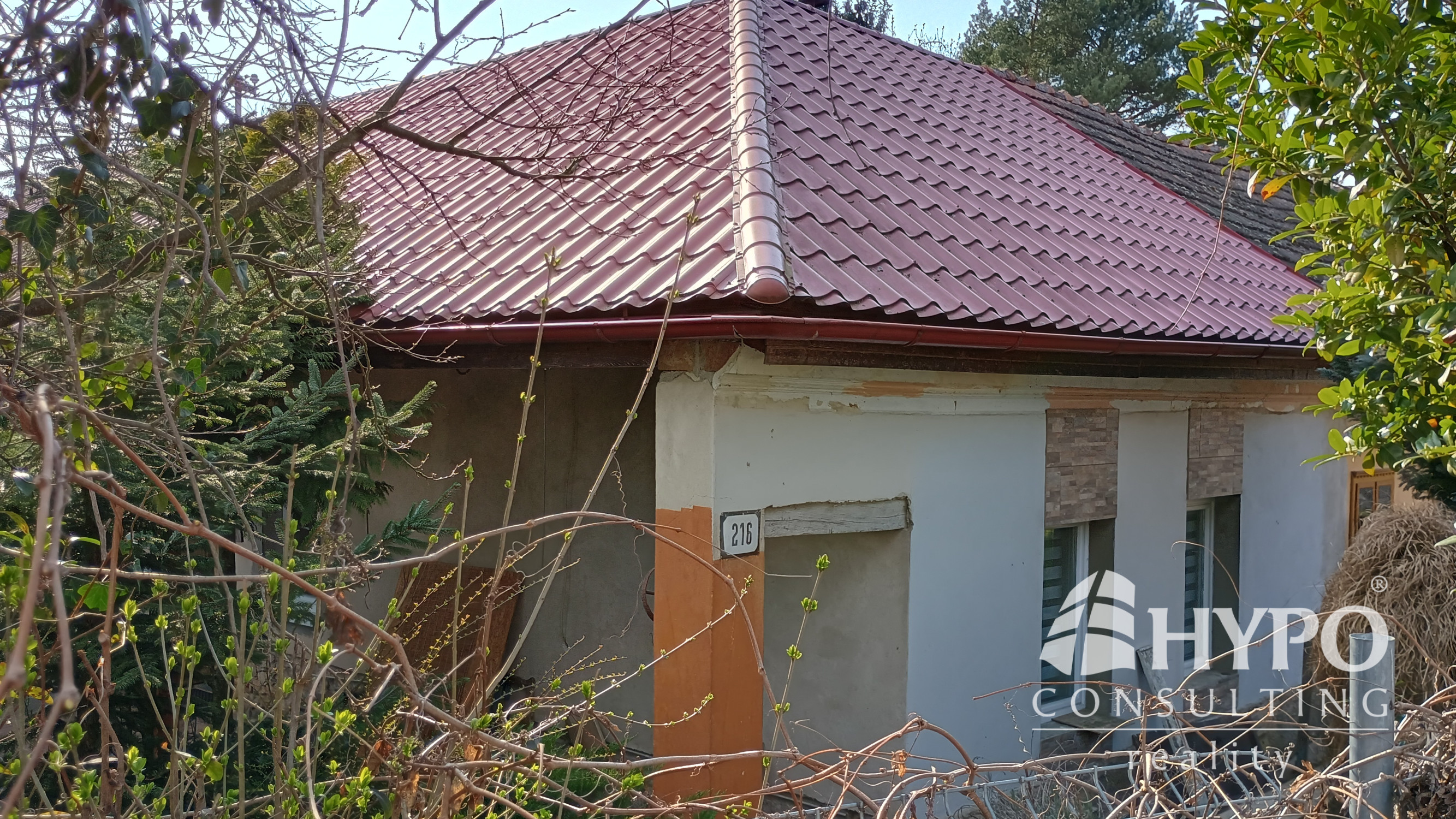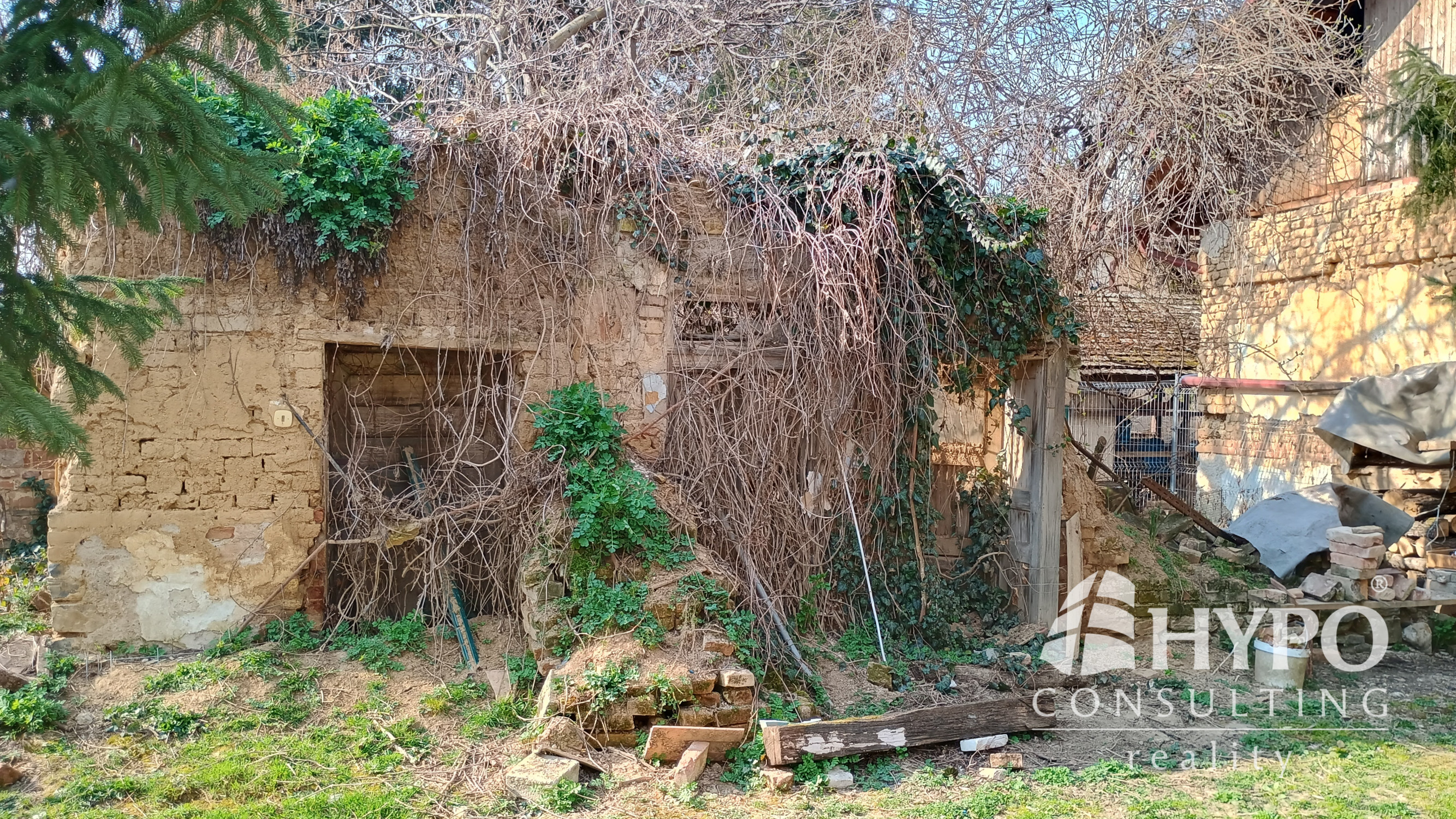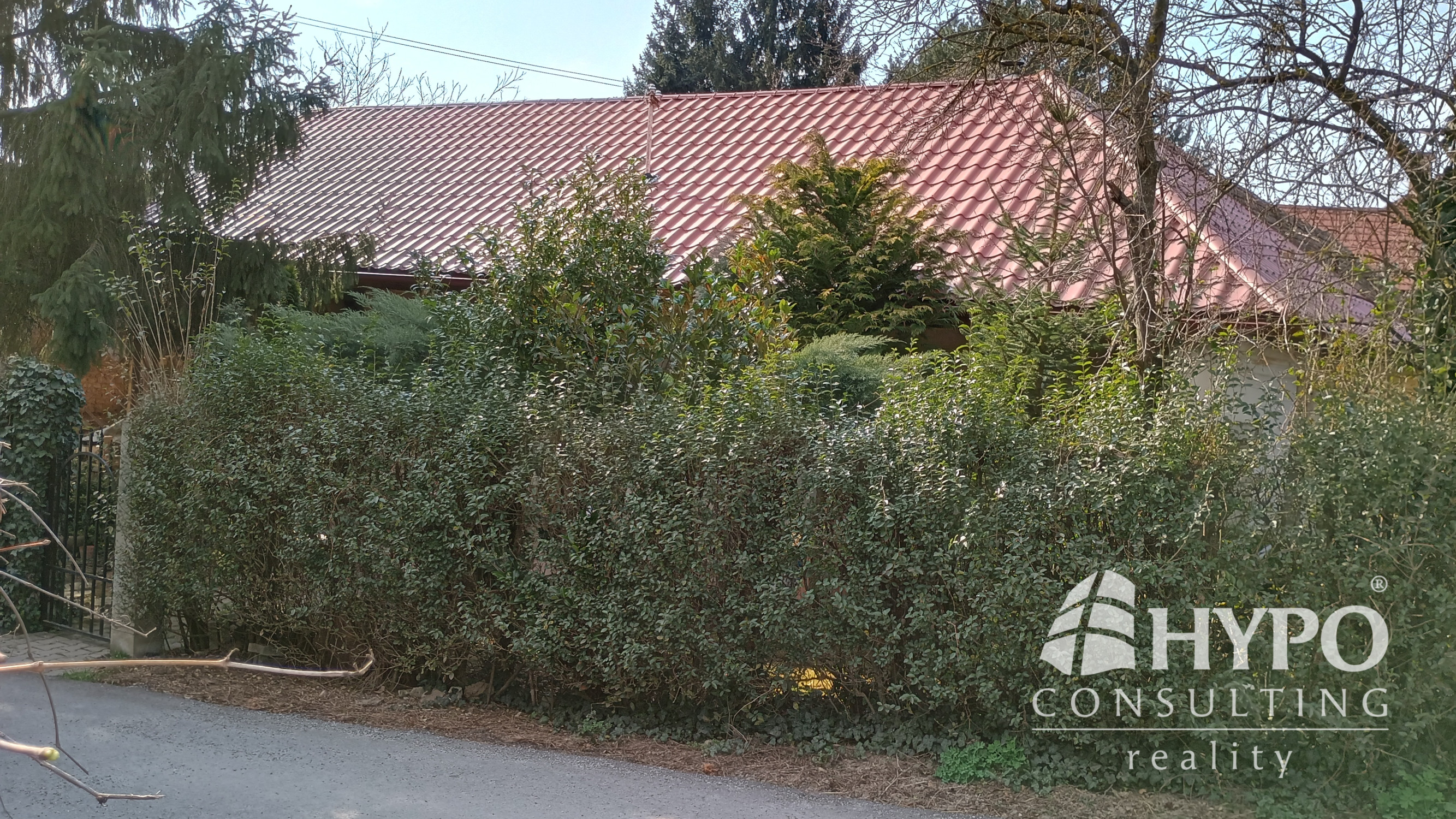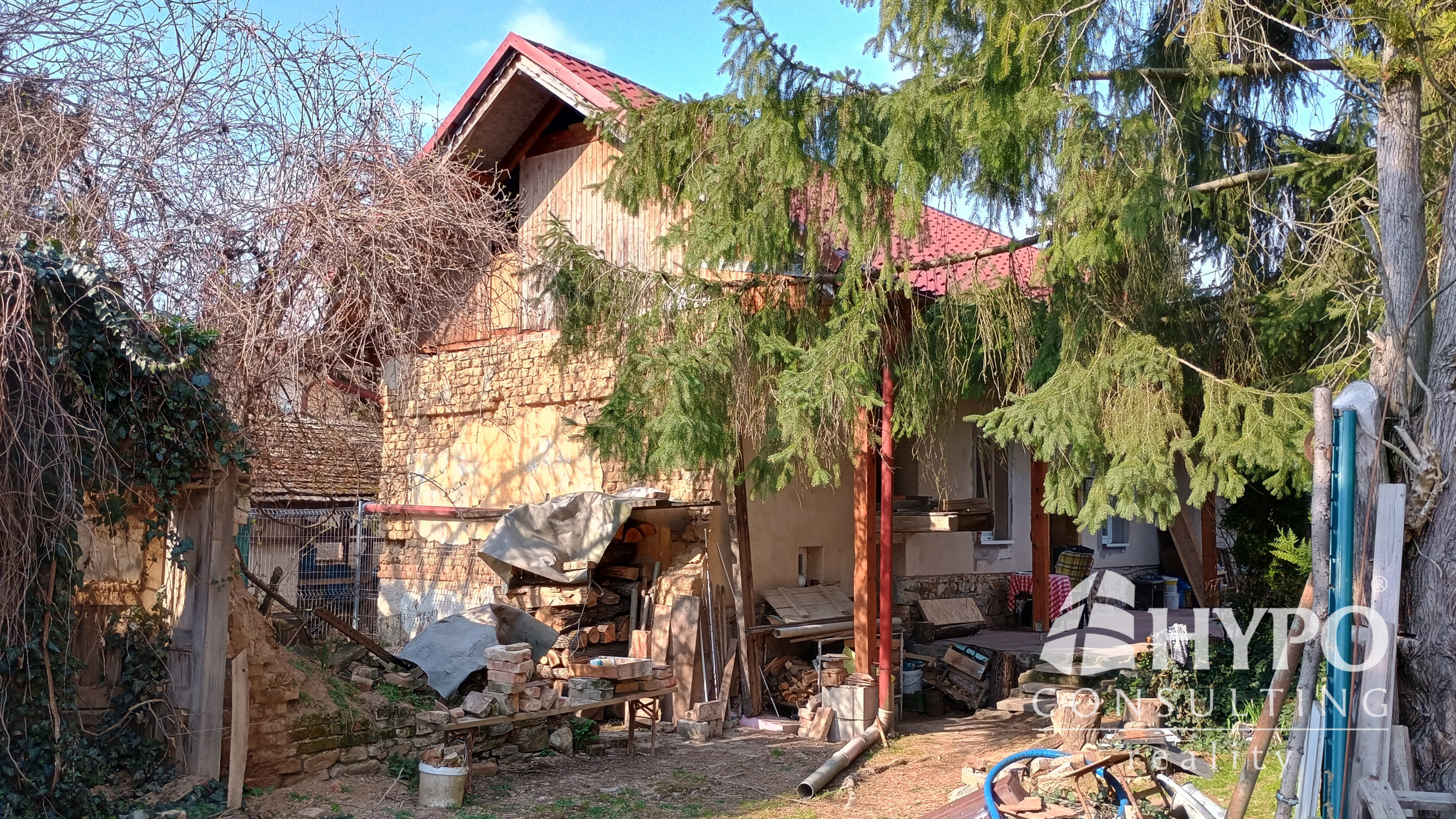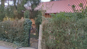 Dom je postavený z nepálenej tehly na kamenných základoch. Predná časť domu je stenami spojená so susedným domom. Na pozemku je množstvo zelene ako tuje, kríky, listnaté a dominantný ihličnatý strom. Vstup na pozemok je zo slepej uličky, na ktorej sa nachádzajú ešte dva domy. To zaručuje celkový pokoj.