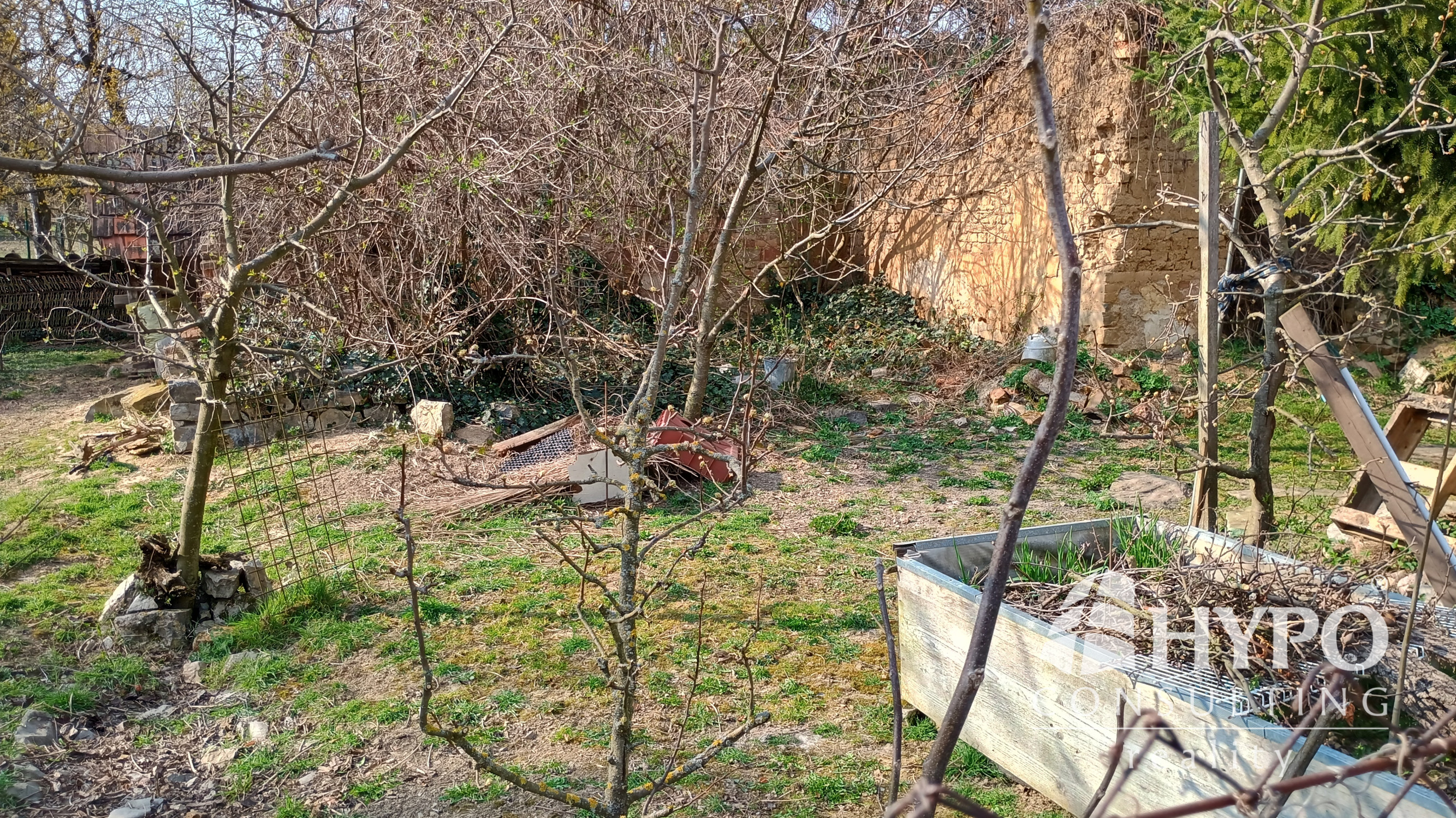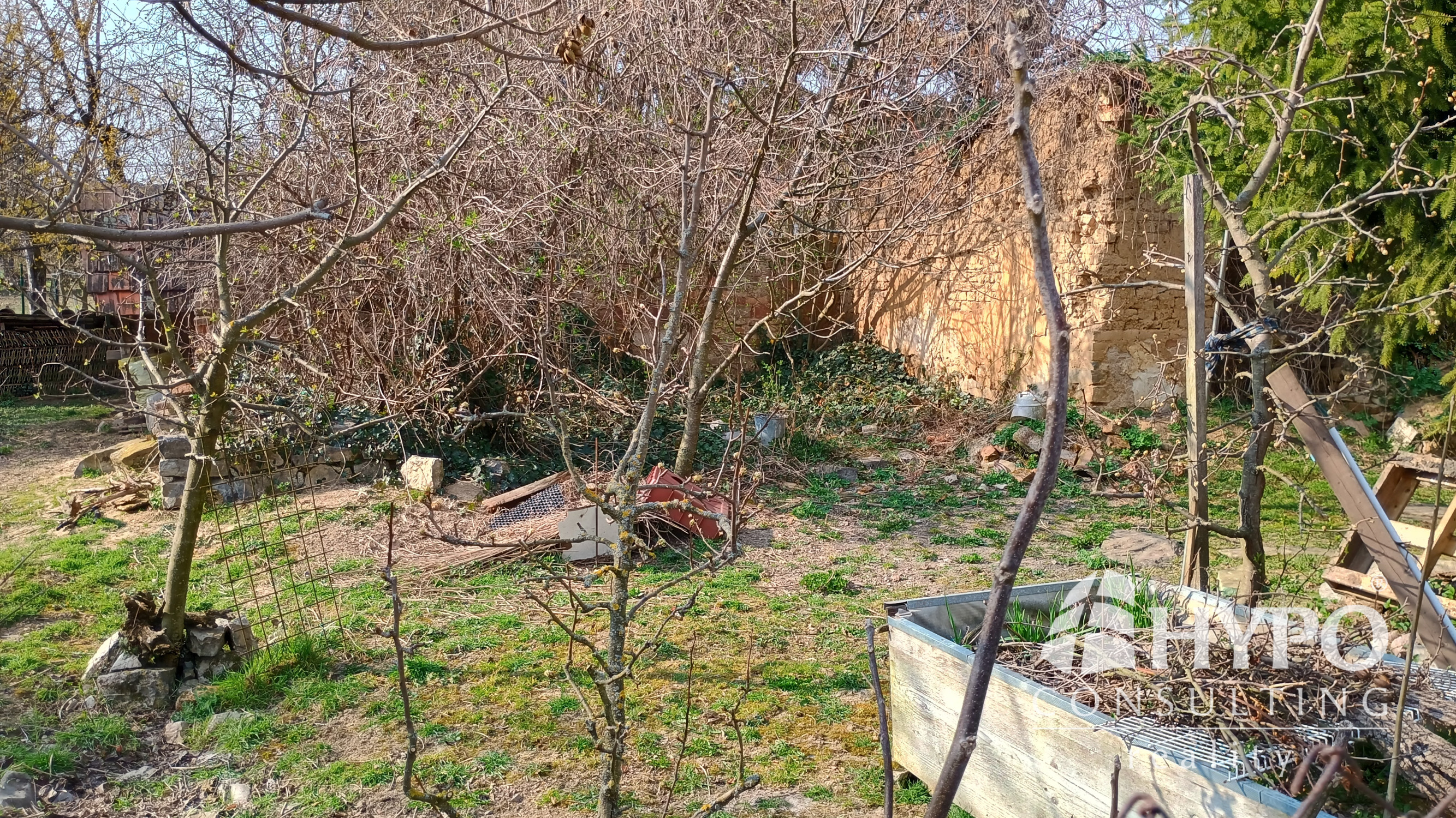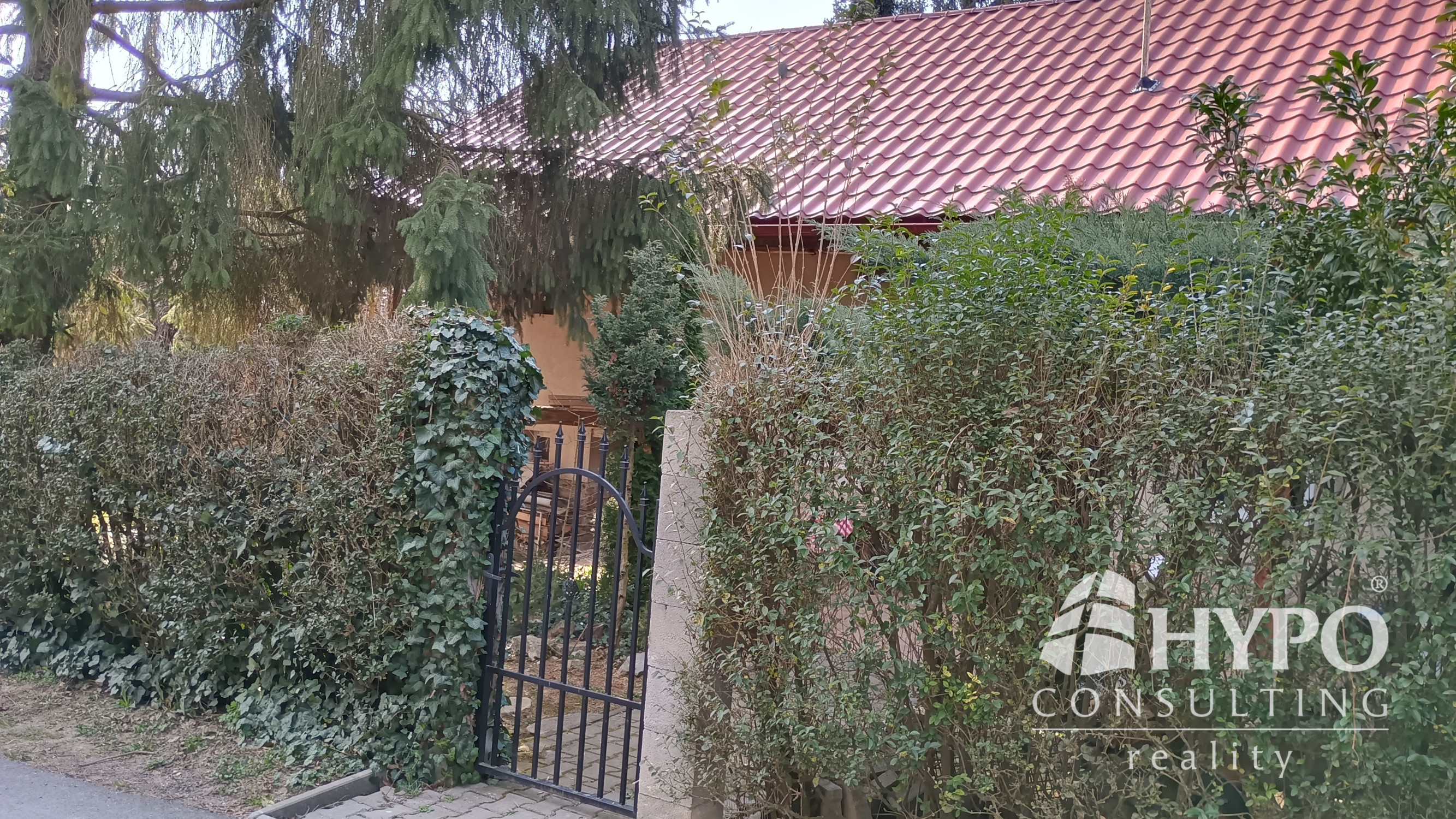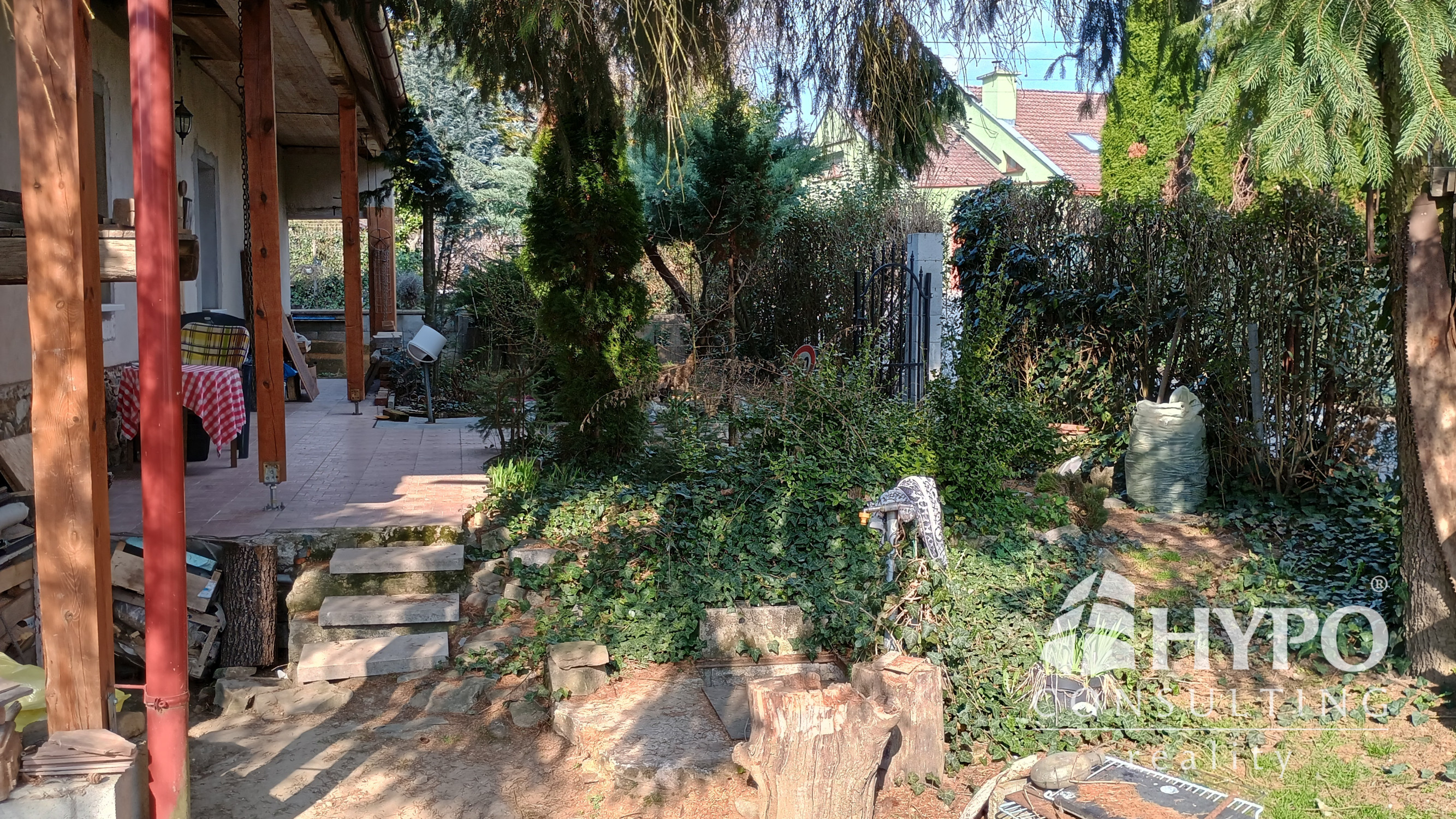 Dom je postavený z nepálenej tehly na kamenných základoch. Predná časť domu je stenami spojená so susedným domom. Na pozemku je množstvo zelene ako tuje, kríky, listnaté a dominantný ihličnatý strom. Vstup na pozemok je zo slepej uličky, na ktorej sa nachádzajú ešte dva domy. To zaručuje celkový pokoj.